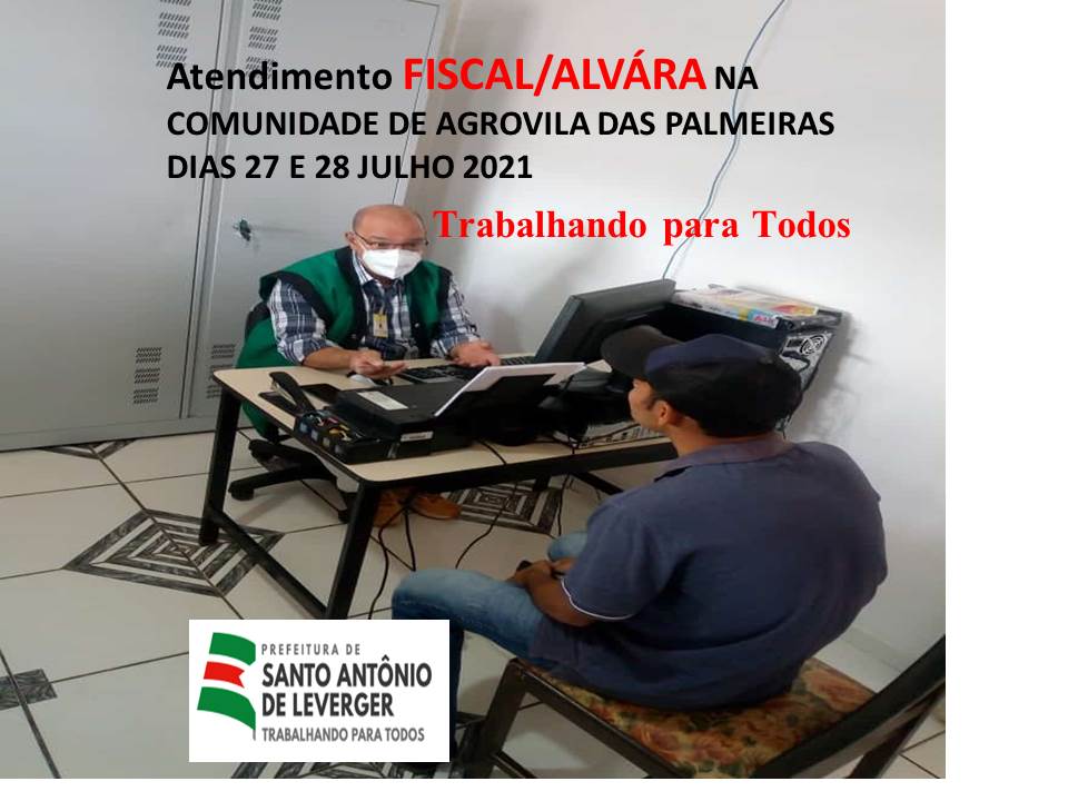 Atendimento Fiscal/Alvára na comunidade de Agrovila das Palmeiras dia 27 e 28 Julho 2021.