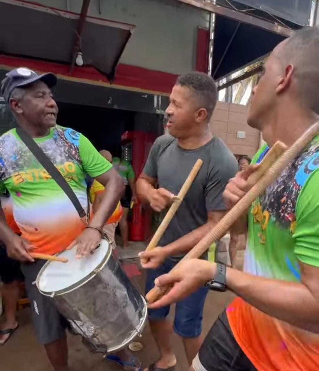 “O Entrudo, é um evento, que abre as festividades do carnaval, e teve inicio com reza cantada, roda de siriri, e muita molhação”.