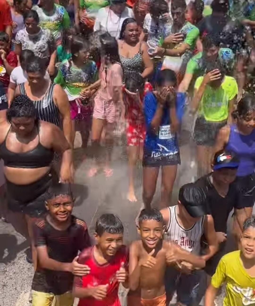 Para Maria de Eduarda de 12 anos, moradora do bairro Fronteira, a parte preferida dela, é o momento da molhação.