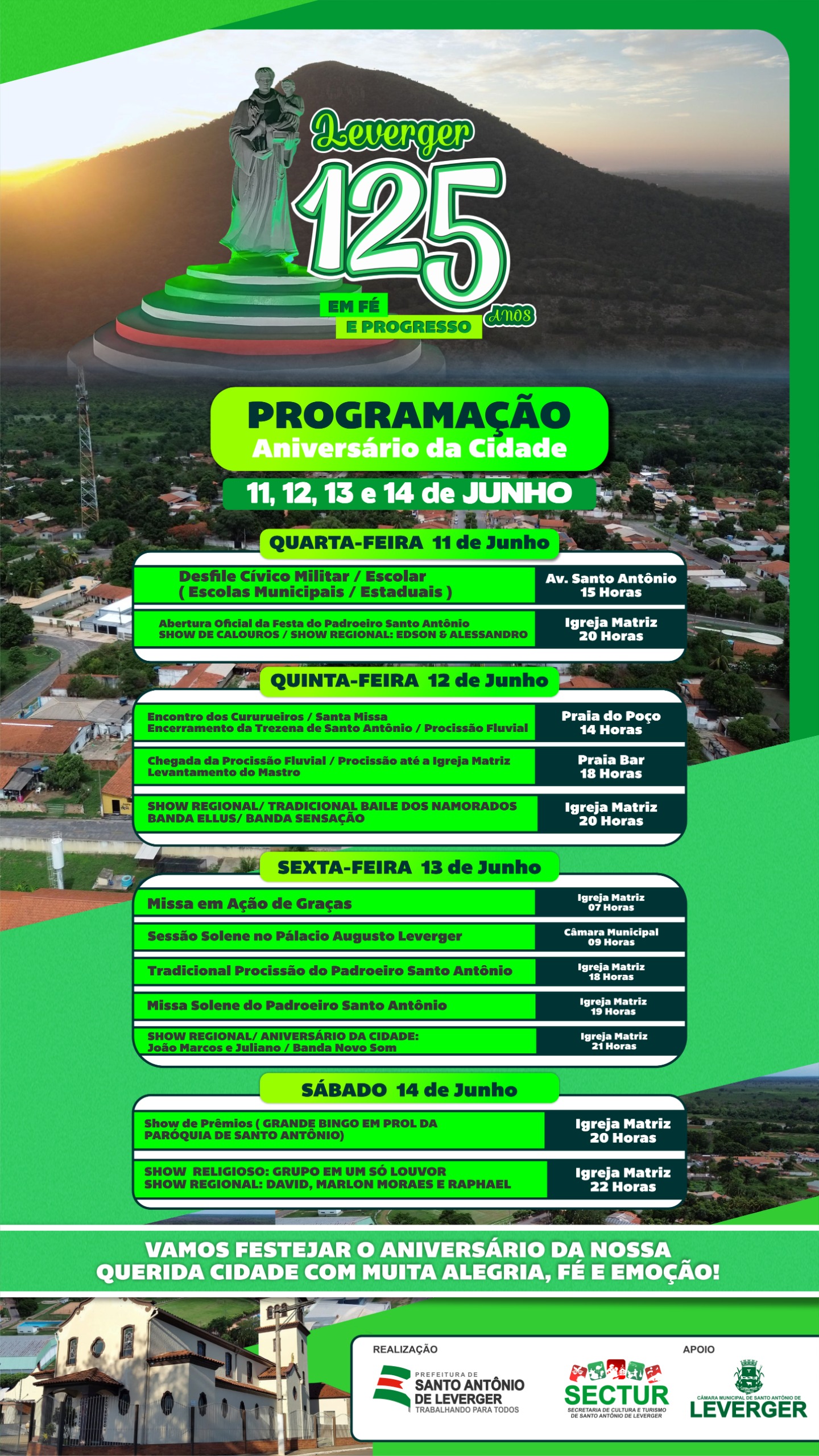 “A gente faz questão de comemorar essa data com muito carinho. São 125 anos de histórias, lutas e conquistas. E a nossa Leverger merece ser homenageada em grande estilo, com o povo participando, sentindo orgulho desta terra”, concluiu Francieli.