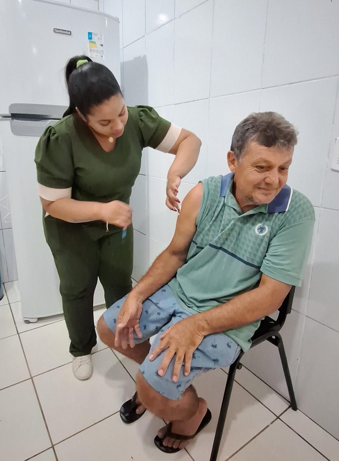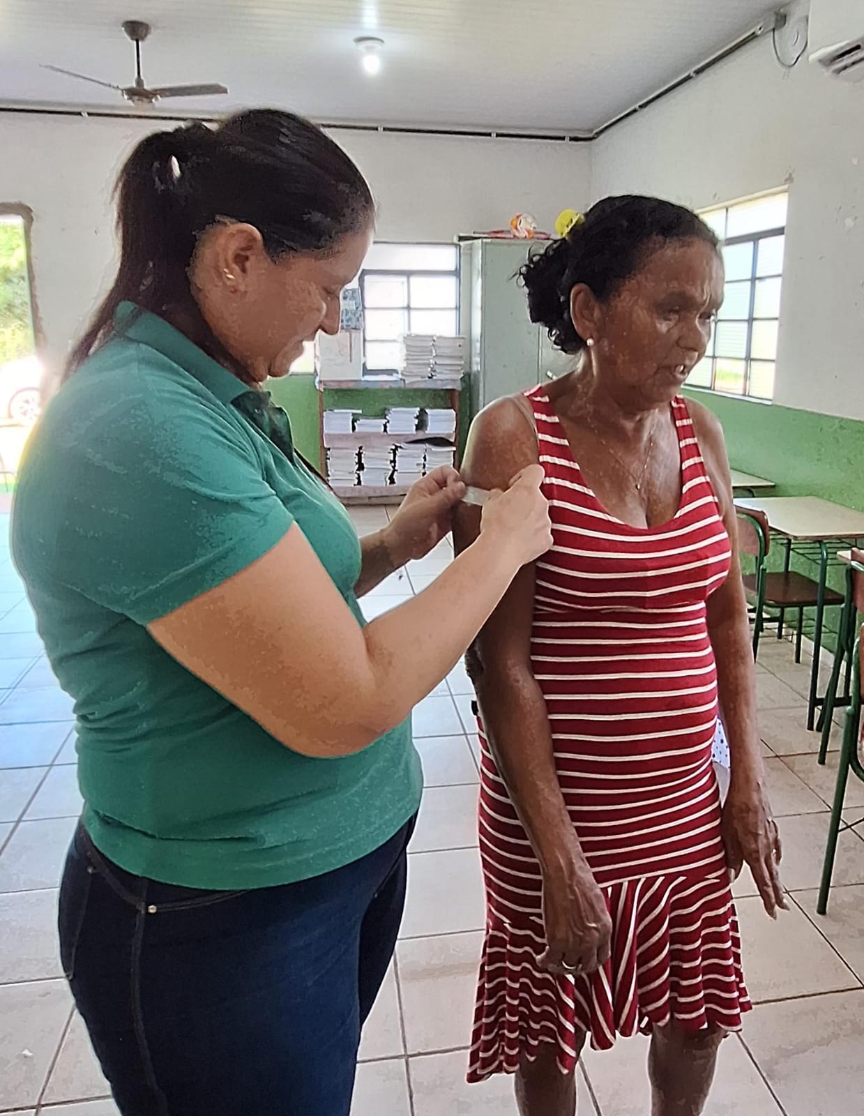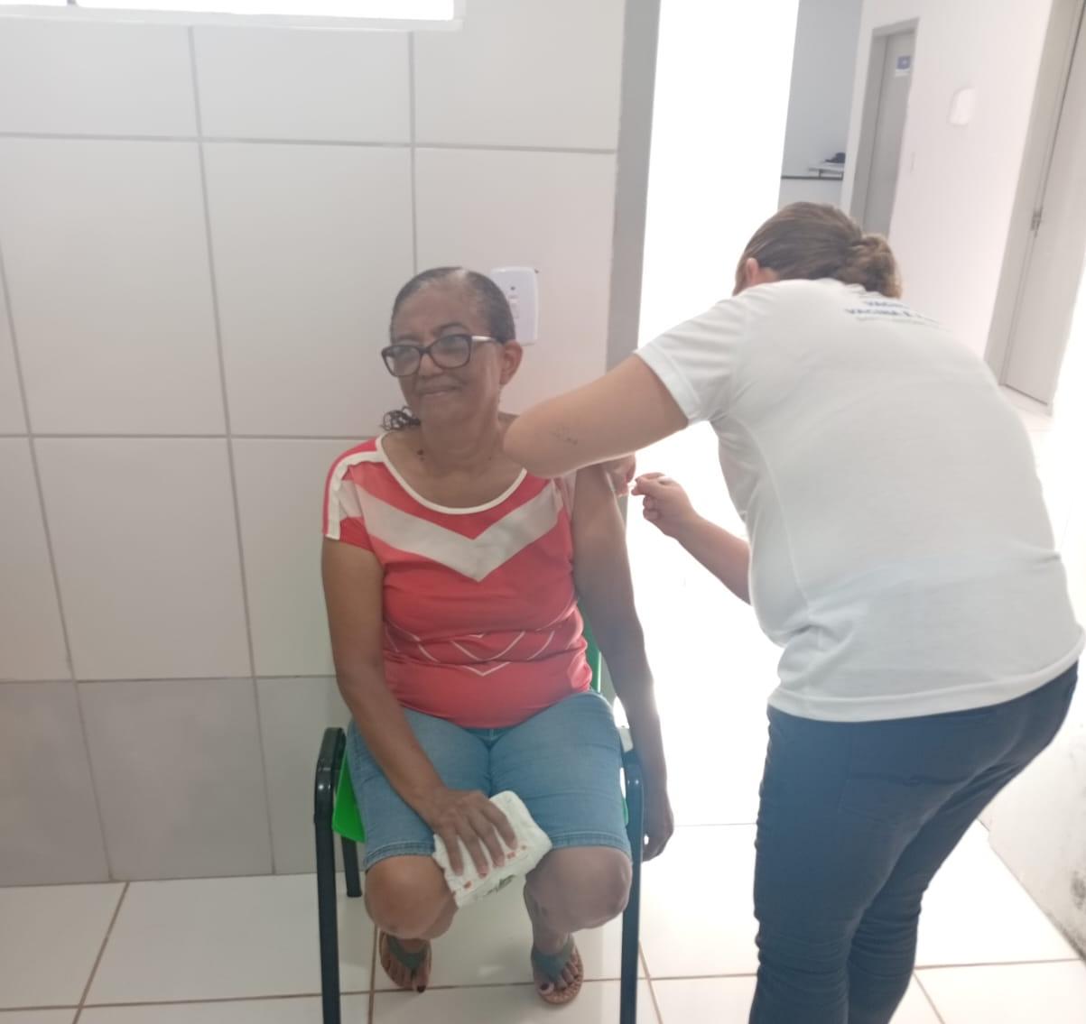 Na ocasião, morador da comunidade de Porto de Fora, o senhor Manoel Ribeiro, de 69 anos, recebeu a dose da vacina.