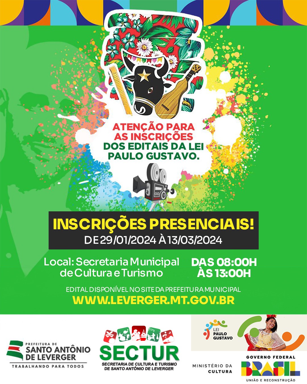 O município de Santo Antônio de Leverger, não está fora dessa, com isso, estará abrindo as inscrições no próximo dia 29.01.2024, para aqueles que participam ativamente do desenvolvimento cultural, estarem apresentando seus produtos.