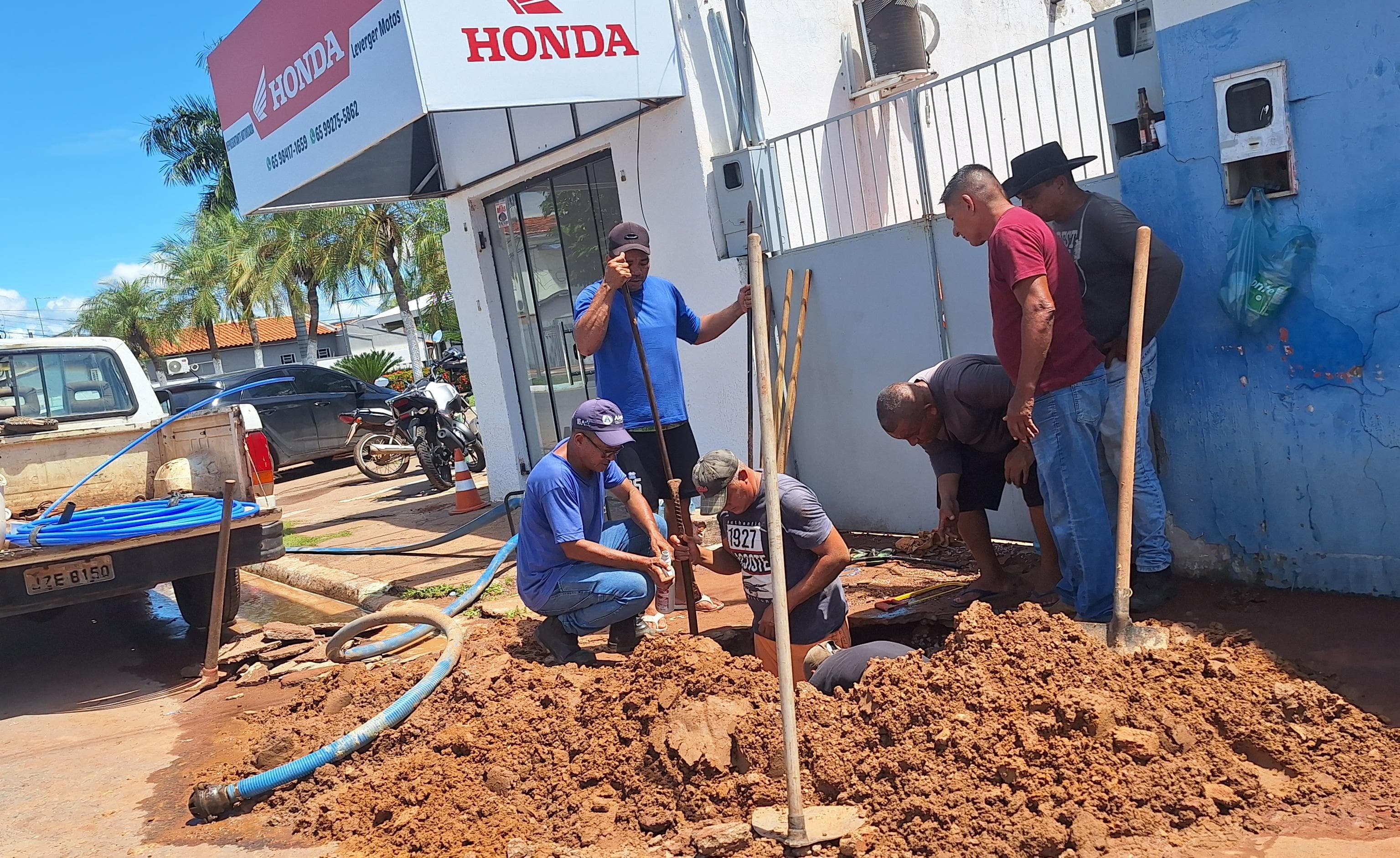 A Prefeitura de Leverger, por meio da Secretaria de Saneamento e Abastecimento de Água, realizou nesta segunda-feira, 10.02.205, uma importante manutenção na rede hidráulica do bairro Centro. A intervenção teve como objetivo, solucionar um vazamento que comprometia o abastecimento das residências da região.