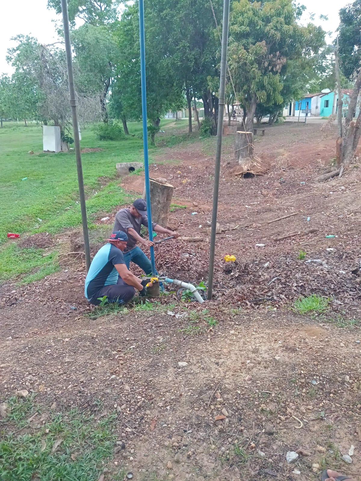 Além dos trabalhos no poço, a equipe, está fazendo instalações de ramais na rua que dá acesso à localidade de Engenho Velho.