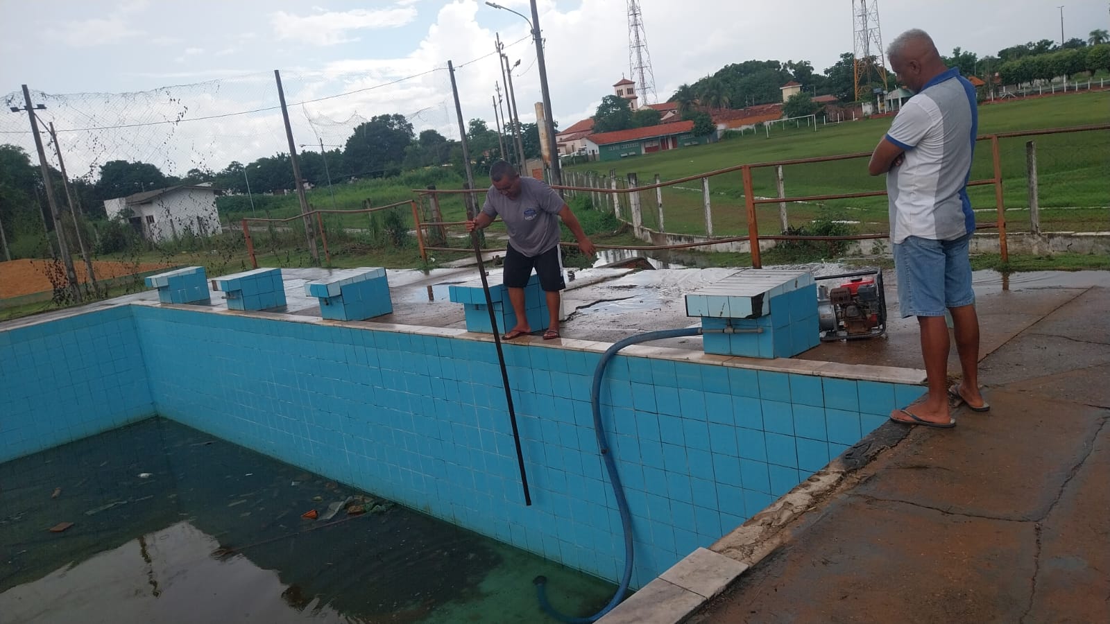 Os serviços de roçagens, alinhamento das quadras de areia, limpeza da piscina semiolímpica, além de outros serviços, estão sendo feitos no Complexo, que vai atender a população.